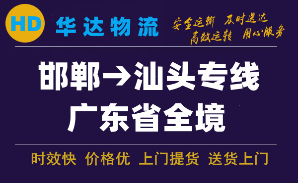 邯鄲到汕頭貨運公司|華達物流工作人員接到您電話后,第一時間趕到您指定地點提貨,并辦理相關手續,需要包裝的貨物公司會為您全權負責,一切交給我們,貨物到達指定地點后會第一時間通知收貨方取貨,優質的服務是公司穩固和發展的必然要求,良好的服務能夠讓公司樹立良好的品牌形象,也更加能夠深入人心,得到客戶們的青睞和支持。邯鄲發汕頭快運專線天天發車,華達物流的服務網點輻射全國,在全國各大省、市、自治區,大、中小城市都設立了物流網點,并且與許多企業建立了長期、穩定的合作關系。