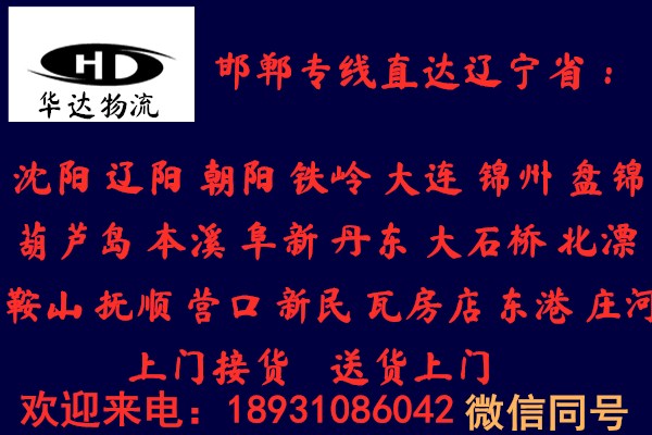 邯鄲到北鎮物流公司 |邯鄲到北鎮物流專線 華達物流 電話0310-5510646手機18931086042專業提供邯鄲到北鎮物流專線運輸、整車運輸、零擔運輸、大件運輸、長途搬家以及易碎物品整理裝箱、家具電器拆卸打包等服務。10年物流運輸經驗,保證客戶零風險,一站式綜合邯鄲到北鎮物流服務,您值得信賴!