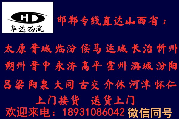 邯鄲到汾陽物流公司運費查詢:18931086042華達物流以一流的服務體系,本著安全,準時,互友,互惠的原則贏得市場,只要一個電話,一切由我公司操辦, 望廣大新老客戶給予大力支持、與我公司聯絡,我們將竭誠為您提供一切方便,歡迎來人來電咨詢!